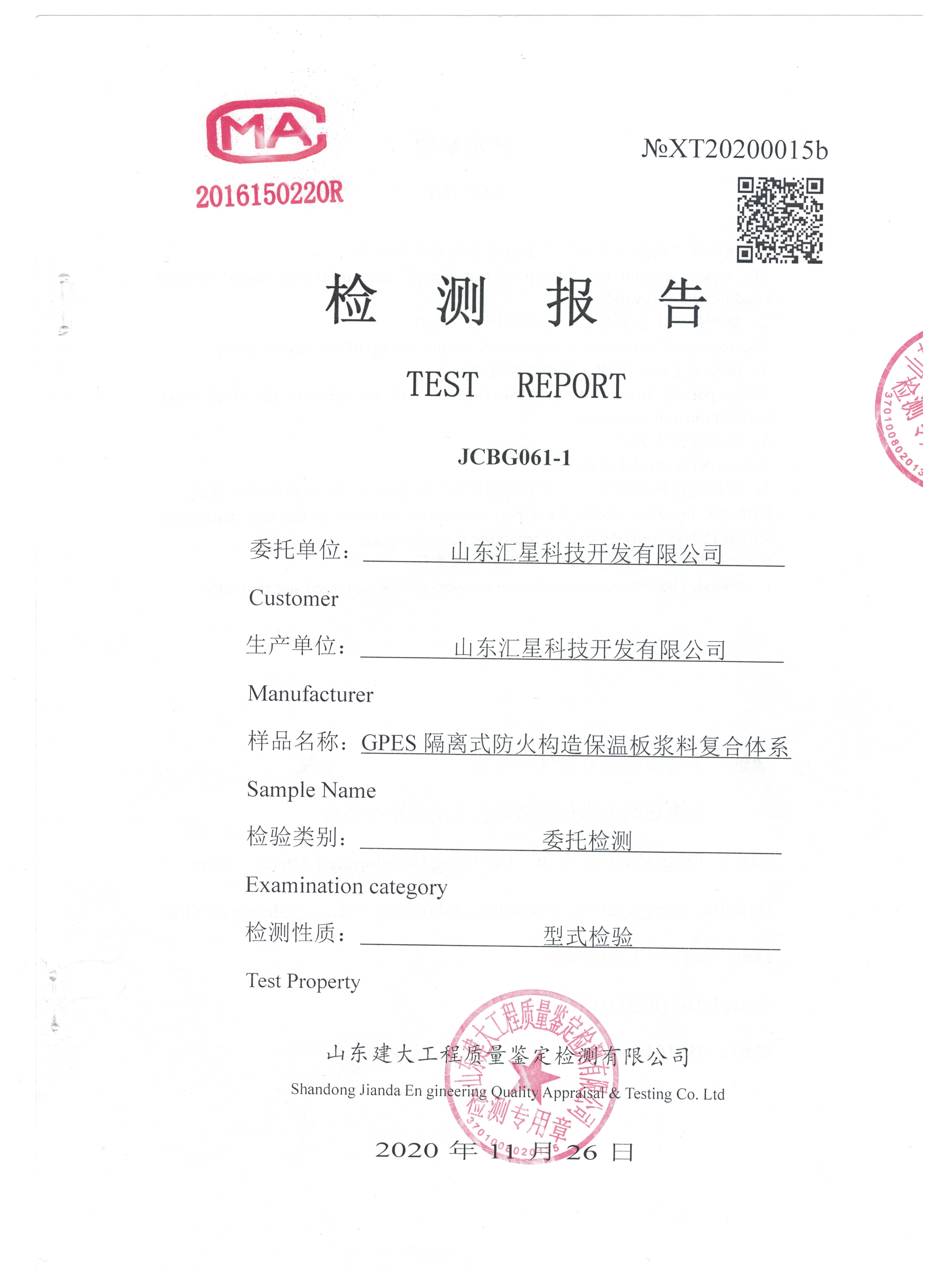 GPES隔離式防火構造保溫板漿料復合體系