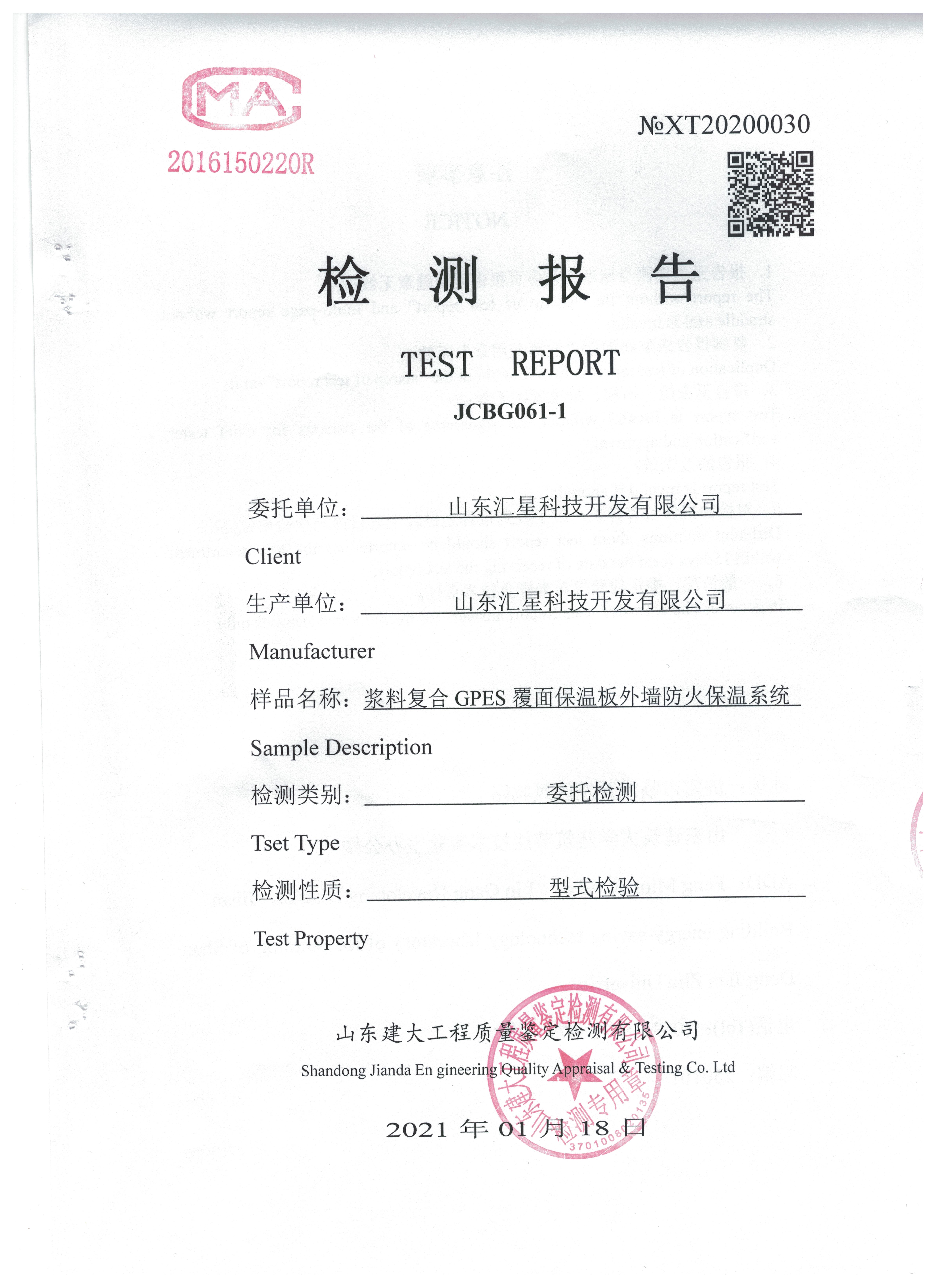 漿料復合GPES覆面保溫板外墻防火保溫系統